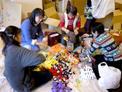 「東北の子どもたちへおもちゃを!」フェルトをチクチクするママたち♪