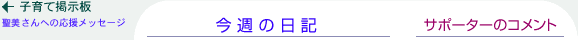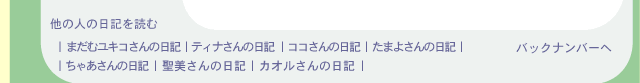 長い間の日記の執筆お疲れさまでした&本当にありがとうございました。ここのところの聖美さんには、2人目育児ならではの、ゆとりとか奥行きとかを感じて、敬服していました。最後の日記でクラブとか朝帰りの文字に出くわせるなんてステキ!!着実に”いい女”路線歩んでいますよ!時々はいい女ぶりをお知らせくださいね。