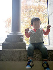 ところが…すぎ丸は今回も一切興味を示さず、床におろしたと同時にみんなの輪から抜け出し、棚から売り物の本を引っ張り出したり、歩きまわったり。もう1人、ウロついていたずらしている男の子がいて、その子のお母さんと目が合ってお互い苦笑い。売り物のカードを派手にばらまきはじめたところで、さすがに止めさせて本屋をあとにした。