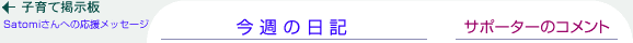 日記の執筆おつかれさまでした。生まれたてのつーくんの写真を見直して感無量です。楽しくバリバリと活動的なSatomiさんの日記に「おー!」「こんなものがあるのかー!」と驚きの連続でした。CAの仕事に復帰されて、いちだんと盛りだくさんな毎日かと思います。どうか今後もSatomiさんの「健康第一」で、パワフルなお母さんでいてくださいね。本当にありがとうございました。