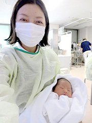 午後、看護師さんが母子手帳を持ってきてくれ、記入されていた分娩時間に、どびっくり!!『62時間』と書いてあったので、30時間位と思っていた私はぼう然としました。その後、怒涛のように涙があふれてきて、「実感ないけど、がんばったんだ、私」と思いました。どうりで朝から看護師さんがみんな「本当にお疲れ様でした」とか「すごく頑張りましたね」と、声をかけてきたわけかと納得しました。私は62時間過ごした自覚はないけど、付き添ってくれた夫、両親に本当に感謝します。