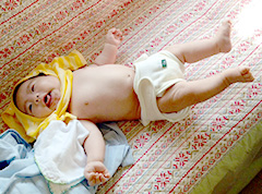 ヨダレも結構出るので、友達が置いて行ったスタイ10枚パックの中から夫に3枚持ってきてもらってました。でもすぐびちょびちょになるのでやっぱり10枚丸ごと持って来てもらえばよかったな~。お徳用パックを見た時はこんなに必要あるの?と思ったけれどあったんですね。