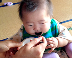 延長コードが壊れて炊飯器が途中で止まったので、微妙な固さのおもゆもどきをあげてみました。時々食べていた普通のご飯に比べてイマイチな顔つきだったので、離乳食スタートどうしようか迷います。