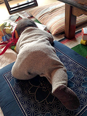通りを散歩する人や軽トラで通りかかる人が声をかけてくださり、ご近所デビューも無事果たしました。赤ちゃんがいると好意的に話しかけられることが多く助かります。