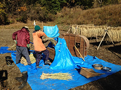 DASH村か??と見まごうような脱穀機! 自然農法のお米はどんな味がするのでしょうか?