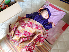 せっかく出たので、ボラに誘ってくれた友人宅へお邪魔しました。豆炭こたつやプラダン、プチプチで冬支度された室内を研究させてもらいました。古い家も工夫すればかなり暖かくなるようです。息子もこたつデビューを果たし速攻で寝落ち。豆炭、ホカホカでした。