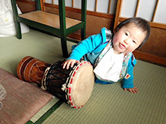 3月29日(日) バンバン 友達が来るので襖を開け放していたら、タンタン太鼓をなでるような音が。いつも閉めている部屋に転がっていた太鼓を叩いてました。叩くものだとわかるんですねぇ。気に入ったようでちょくちょく太鼓のそばに来て叩くうち、強い、なかなかいい音が出るようになりました。 誕生祝に一升のパンをいただきました。餅よりずっしり感じるのは何故でしょう?
