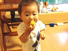 息子はケーキを一口食べて大興奮! 帰省中にいろんな美味しいものを覚えて、自宅の質素な食生活に戻ったらどうなることやらです。