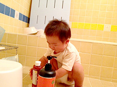 ペットボトルをぶら下げて歩くのが流行りです。後ろから見るとゆらゆら左右にバランスを取って歩くのが、ヤジロベエみたいで笑えます。私がびっくりするような重い物を持ち上げたりして、知らないうちにマッチョになっているようです。