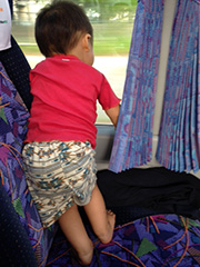 日曜の早朝、東京へ向かう高速バスでは、カーテンのスナップを留めさせてはひたすら外していました。以前はシートの対角線に収まって寝て行けたことを思うと、赤ちゃん時代ははるか彼方、寂しいような嬉しいような…。