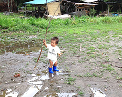 パラパラいまいちなお天気ですが、畑で野菜を収穫し、友達が飼っている乳ヤギのマツコの好物、クワの枝を刈って届けに行きました。子ども達は少しマツコに桑をやったらすぐ満足したのか、ずっと鶏を眺めていました。なぜ鶏がそんなに人気なのか謎です。