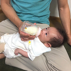 ミルクを飲みながら、しっかりと見つめる目が素敵です!