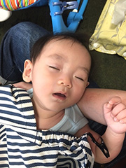 もう、ダメだ!と思ったところで(まだ目的地ではなかったのですが)電車を降り、ホームを端から端まで歩いてベビーけいちゃんを寝かせます。ぐっすり寝入ったところで再度電車に乗り込み無事に帰宅。やれやれ…。