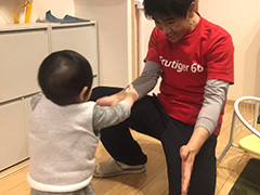 そして初歩きが自分の元へ来てくれた事で旦那さんは嬉しそう。良かったね。ナイス親孝行、ベビーけいちゃん!