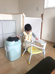 ベビーけいちゃんは安定のイタズラッぷりで、洗濯物をグチャグチャにするのは勿論、テレビの画面を違う方向に向けておく、リモコンはガンガン打ち付けてから投げ捨てる、テレビ横のスタンド式のスピーカーは配線をぶっちぎってテレビ前へ移動、オムツペールは手押し車のようにあちこち押して歩いて床にキズをつけ、私の化粧水は振りまくってよ~く泡だててから放置、などなど…。気をつけていても次から次へとキャーキャー楽しそうにやらかしています。