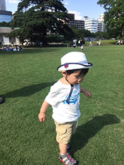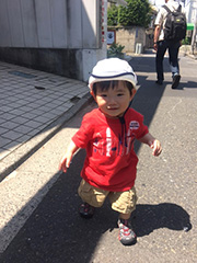 転んだ拍子についた両手がどうやら手前すぎたらしい。そのまま両手を支点にしてシーソーのようにゆっくりと倒れて…おデコで着地。「ごつッ」。あせる母。ほ、骨の音がしたよ~?!もちろん大号泣のベビーけいちゃん、おデコにコブができてしまった。不幸中の幸いは勢いが止まってからのシーソーアタックだったので、ものすごくゆっくりと打ち付けただけで(それでも充分に痛いけれど)すり傷にはならずに済んだ。