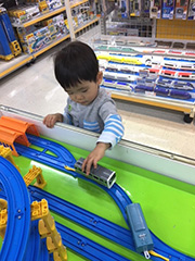 10月3日(火) 電車大好き ベビーけいちゃんが明確な意思表示をしてくる。お茶が飲みたいとか、何が食べたいとか、今はやりたくない、やりたい、ああして、こうして…指をさしたり、身振り手振り、たまに日本語っぽいホニャララ語を駆使して伝えてくる。その態度はまるでベテラン監督のようで、指示を読み間違えると烈火の如く怒る。沸点が低すぎる…逆に、すぐに正解するとニッコリ笑顔で満足げに去っていく。最近の一番困る指示はしょっちゅう携帯で電車の動画を見せろ、というもの。とりあえず最初は分からないフリをするけど、ハッキリ「でんしゃ!」と言いながら携帯を指差してくるので実はすぐに分かる。とにかく電車が好きでたまらないらしいけど、ハマりすぎだよ~。一応、時間を決めて見せているのでお断りすることもあり、そうなると自分でスマホを持ちなんとかしようとする。1歳にしてフリック、スワイプするなんて世も末だわ…。