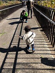 11月8日(水) ぶら~ッと お散歩がてら高田馬場へ。電車がよく見えるスポットで山手線や西武線、埼京線などをたっぷり見た後はベビーけいちゃんの熱烈なリクエストにお応えして東西線へ乗車。中野駅まで移動して総武線や中央線、東西線をまたもや近くからた~っぷり!帰りは電車には乗らずにブラブラ歩きながらオヤツを食べたり、裏道をベビーけいちゃんと歩いたり。よく歩かせているせいか、ベビーけいちゃんはたくさん歩けるようになってきて、常に小走りなので大人の早歩きくらいのスピードでどんどん進む。たまに私も小走りじゃないと間に合わないくらい…もっとゆっくり歩こうよ~!