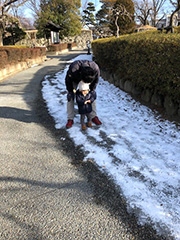 雪が気に入ったら、ぜひ将来は大回転の名手になって、『トンバ』あたりを 目指してもらいたいもの。。。。縁起がいい初夢でしょ♪