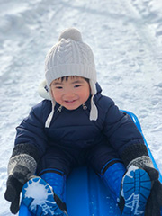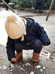 都心で雪が積もると、いつもの風景が一変しますね。子どもは、雪でも寒くても、ただ遊びたい気持ちだけです♪