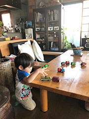 実はコレ、先日スイスから帰国していた従兄弟くんが持っていて、けいちゃんがすっかり気に入ってしまったもの。同じ物を買ってあげようとしたら海外のみの販売で、しかもすでに製造中止になっているとのこと。従兄弟くんも買ったのではなくお下がりをもらったらしい。それでもなんとか探し出し、はるばるイギリスからお取り寄せしてくれていたらしい。もちろん、けいちゃんは見るなり大喜びで遊んでいた。本当にありがたい。