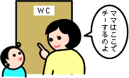 後追いする子どもがママがトイレに入る時もくっついて来るようなら、その時を利用して「ママ、チーしてるのよ。○○ちゃんももう少ししたらここでチーしようね」と教えるのもいいでしょう。このような経験に加えて、言葉の数が増えてくると、オシッコやウンチが出た後に「チー」「ウンチ」と教えてくれる子どもも出てきます。子どもが教えてくれたら、「えらいねー。チーしたのがわかるの」「ホントだ。ウンチ出たね。教えてくれてありがとう」とほめてあげましょう。