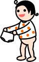 でも、実際のテクニックはまだ未熟なので、ママはちょっと手助けしてあげます。パンツをはきたがる時は、床において「はいてごらん」と声をかけたり、自分でタンスからパンツを出してくる時は、前側にアップリケなどで目印をつけておくと、前後の区別ができますネ。上手にはけたら「よくできたね」とほめてあげましょう。片方に両足を突っ込んでしまった時など、「ダメね、だからママがしてあげるって言ったでしょ!」などと声を荒げるのはマイナスです。