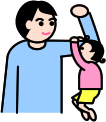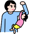 - ★力こぶをつくったパパの二の腕に、子どもがぶらさがります。力持ちのパパはそのまま、子どもの体を回してあげます。