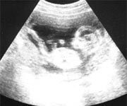 体の小さい赤ちゃんはたっぷりの羊水の中で、自由に体を動かしています。手足を不規則に動かすだけでなく、手を顔に近づけたり、触ったりします。口に触れた手に吸いつくようなしぐさをしたり、頭を上下左右に動かしています。