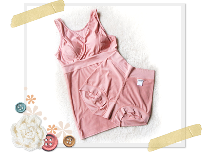 米倉さん「トップスのボディインナーについては、妊産婦さんはもちろん、20代から70代の方までとても幅広くご愛用いただいています。 ショーツのほうは、マタニティ対応にしようとするとどうしても当社コンセプトと相反する“ゴム”を使わざるを得ないため、マタニティ企画にはしておりません。ですが、深履きデザインで生地の伸縮性が高いので、実際には妊娠後期まで履かれる方が多いです。
