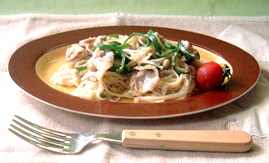 今年の夏、香川県の小豆島に家族旅行をした。小豆島の名物のひとつが、ソーメン。流しソーメンの看板につられて入ったお店の流しソーメンは、なんと、電気で流れる通販で売っているようなヤツだった。半分に切った竹を流れてくるソーメンを想像してたのに…。でもコシがあって味はよかったんだけどね。ところで台所の隅に残っているソーメンどうしよう? もう冷やしソーメンって季節でもないし。おいしい食べ方ないかな? と考えたのがコレ。