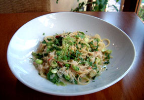 パスタはアルデンテ、とよくいわれるけれど、これは絶対のお約束じゃない。渋谷さんは「アルデンテにこだわらずにソースと麺がよーくなじんだ方が好き」と。麺とソースの一体化を目指して。