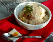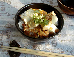 私の大好きな和の鉄人、徳島の小山裕久さんのレシピを丼にしてみました。豆腐を鍋にいれたときに、バリバリっていうからかみなり丼なんだそう。加熱せずに、豆腐揚げ玉丼というのも熱々ごはんに合います。