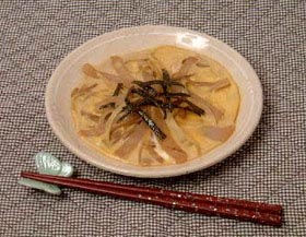 うちの子はコンニャクが大好きなので、思いついた一品。これもホント簡単! コンニャクは薄く切った方が、味がしみて、おいしくできます。