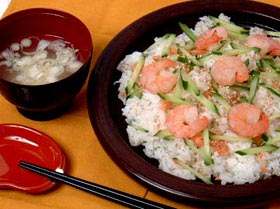 むきエビをイクラに、キュウリをカイワレにしても大人向きでおいしいです。