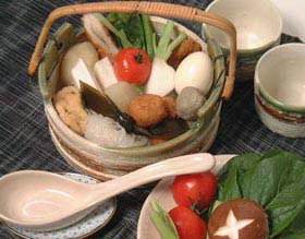 - 大根、しゃがいも、ちくわ、コンブ、小結びコンニャク、つみれ、さつまあげ、ハンペン、ボール、ゆで玉子、がんもどき etc.