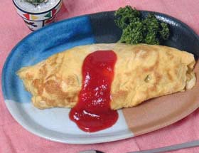 カレーは息子の好物、オムライスは娘の好物。前日の残りのカレーピラフを使い、大きめのオムライスを作ってとり分けると、カレーピラフ多めの子と、玉子焼き多めの子とに分かれます。