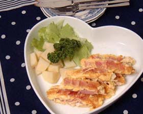 卵をからめて焼くとボリュームがでてメインのおかずになります。とき卵の中に好みのハーブ(パセリやバジルなど)を刻んで入れると大人の味になります。