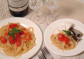 「ゆっくり、おしゃべりをしながら」「白いワインといっしょに」というのがピッタリの嬉しいパスタです。寒い冬も温かい部屋でならOK。オイルサーディンなどともりつけて、パーティのオードブルにも。