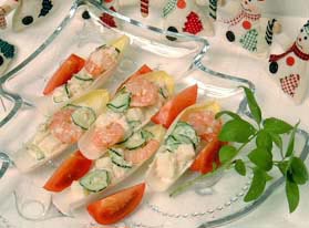 もうすぐ、クリスマス。私の料理は、今日で最後。だから、パーティ向けのカンタン料理。ゆでたカニならかなりのご馳走。チコリに盛りつければ、ちょっとしたおもてなし料理になります。