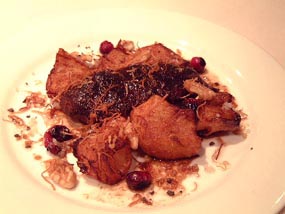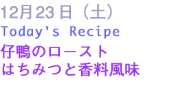 | クリスマスにふさわしく仔鴨を使った1品です。はちみつがカリッと甘い鴨の皮が、ちょっと北京ダック風で、リッチな雰囲気が漂います。