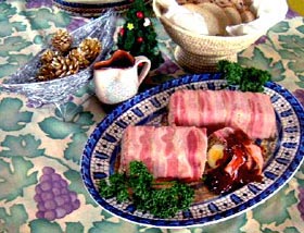 アスパラのグリーンと、ソースの赤みでクリスマスをイメージ。金太郎飴のような切り口が楽しいでしょ。