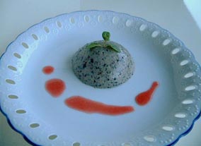 | 3 2を冷まし、固まりかけてきたら、7分立てにした生クリームを混ぜて料理に入れる。