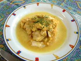 カレ−味は日本人が好きな味。カレ−味の卵とじと考えるとぐっと身近になる料理です。セロリが隠し味でなかなかいい味を出しています。