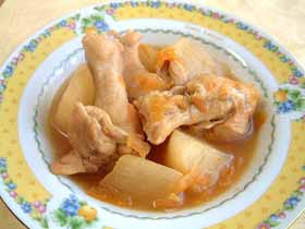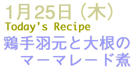 マーマレードの甘さと酸味が鶏肉をさっぱりと仕上げます。大根の皮は千切りにして塩もみして即席漬けに、葉がきれいなときは、刻んで塩でもんで、彩りに添えてもいいですね。