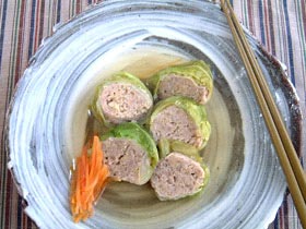 洋風のロールキャベツを和風にしてみました。あっさりと食べやすい一品で、離乳食や長寿食へのアレンジもしやすいです。