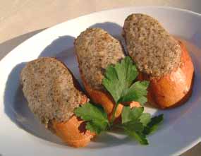 | 5 カットしたパンに4を乗せ、オーブンで軽く焼いて出来上がり。