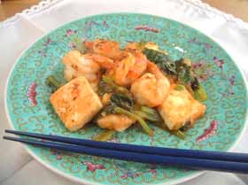豆腐と小松菜でボリュウムもあり、栄養的にも満足のエビチリです。