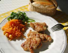 お肉をたたいて、ワインで蒸し焼きにしているので、とても柔らかです。