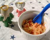 フランスのホームステイ先の家族は、パスタを刻んで食べていたのを、思い出します。しかも、とても柔らかい麺。私の食べ方がおかしいみたいでした。この料理は主人のほうが得意なのですが・・・。蟹の味が出て、誰でも美味しく作れると思います。
